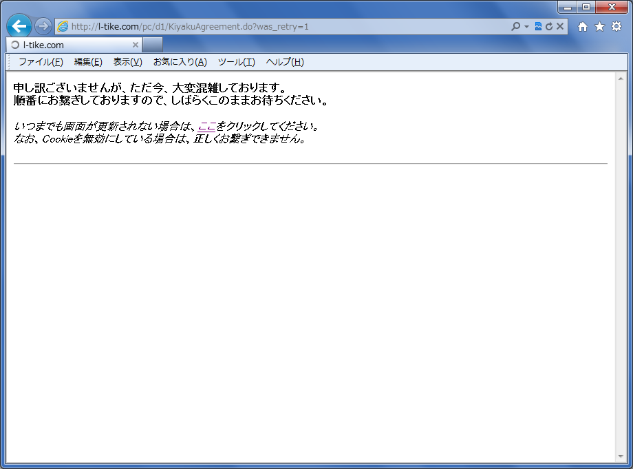申し訳ございませんが、ただ今、大変混雑しております。ちなみにローチケを作ったのは