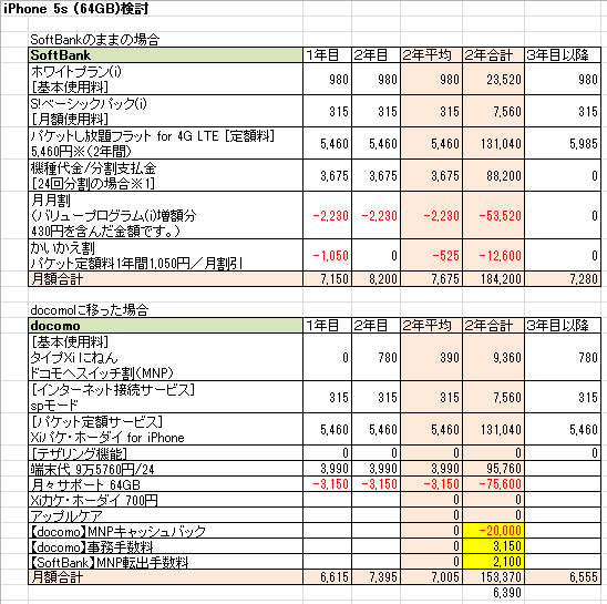 docomoに移る唯一のメリットは、2年間の金銭的コストだった。