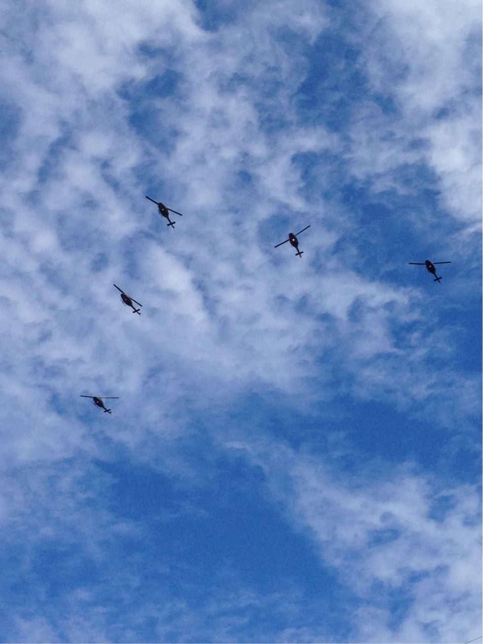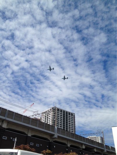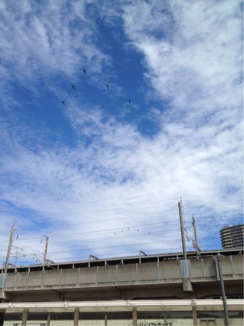 最終的には、5機編隊のヘリを6組で30機、単体ヘリを2機、通常の翼の飛行機を4機で、少なくとも計36機は見たことになる。編隊飛行すら初めて見るのに、こんなに大量とは!ちょっと興奮。航空ショーに行ってみたくなった。